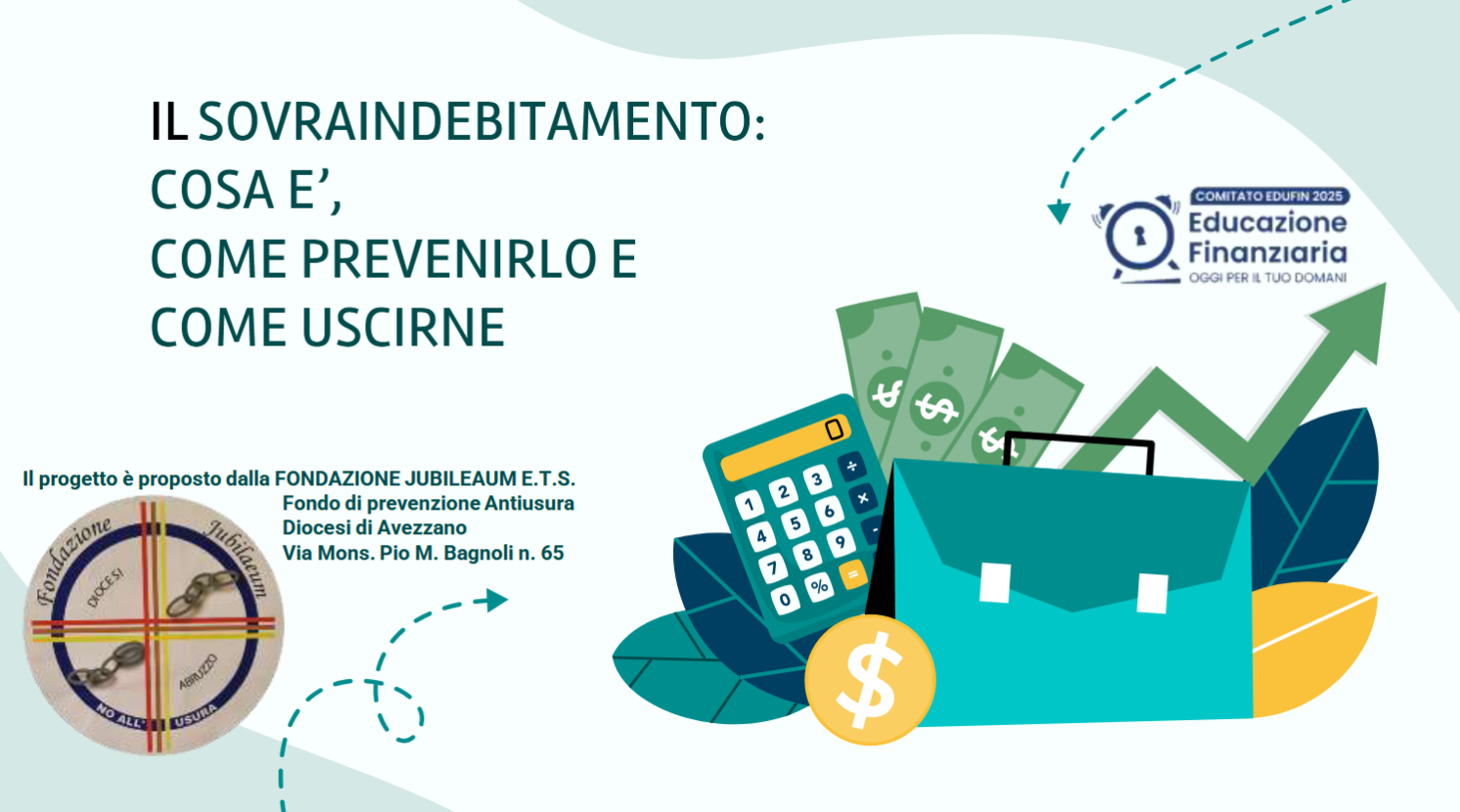 Novembre 2025: mese dell’educazione finanziaria: La fondazione Jubileaum E:T:S. con sede in Via Mons. Bagnoli, 65 – Avezzano, ha aderito all’iniziativa del MEF, in collaborazione del Comitato Edufin, con il seguente progetto Esplora di Più FONDAZIONE ANTIUSURA JUBILAEUM E.T.SSEDE CENTRALE via Mons. Pio Marcello Bagnoli, 65 67051 AVEZZANO tel. 0863 23453 email: jubil.az@virgilio.it